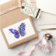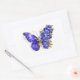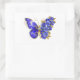 Bijoux, bleu, saphir, papillon aux fleurs pétillantes avec aile décorée de bleu, fleurs précieuses avec feuilles d'or sur arrière - plan blanc.