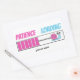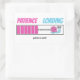 Autocollant tendance et drôle avec "Patience Chargement" personnalisé, barre de chargement rose Barbie tirée par un escargot lent et mignon et "attendez s'il vous plaît" personnalisé en dessous.