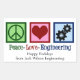 Un autocollant de vacances de l'ingénieur cool avec un signe de paix, le coeur et les engrenages. Mignons autocollants de Noël personnalisables pour une société d'ingénierie. Peace Love Engineering.