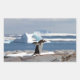 A Gentoo penguin walking in front of an arch out of ice. The image was taken in Antarctica.