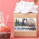 Logo père Noël Monica CA avec plage, jetée et flore de la ville.