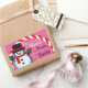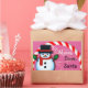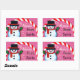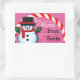 Sticker Rectangulaire Personnalisé de Père Noël Snowman Pink Christmas