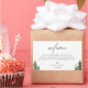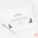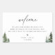 Elégante aquarelle pinède de forêt, mariage étiquette de bienvenue invité. Le modèle fournit des lignes pour votre message, vos noms et la date de l'événement.