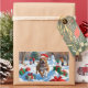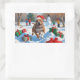 Sticker Rectangulaire Pitbull Dog courir dans la neige avec le Casquette