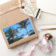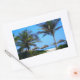 Sticker Rectangulaire Plage de sable avec palmiers et vue sur l'océan