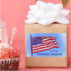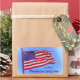 Image de Old Glory, le drapeau des Etats-Unis, volant librement dans un ciel bleu, avec les mots latins "ex libris" (de la bibliothèque) et le nom du propriétaire que vous entrez.