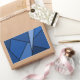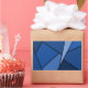Inspiré par le vitrail, ce design géométrique élégant contient des polygones dans différentes nuances de bleu encadrés en noir. Un triangle bleu clair s'élance de la partie supérieure droite avec un ensemble de quadrangles bleus progressivement plus foncés et d'autres formes en spirale autour de lui de la lumière à l'obscurité. Deux formes bleues foncées délimitent le côté gauche du dessin original. numériquement créé une image. Copyright © 2014 Claire E. Skinner. Tous droits réservés.