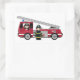 Sticker Rectangulaire Pompier à caricature mignonne et moteur incendie