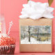 Artiste de Zolotareva. aquarelle sur soie - dessin manuel; pont de pierre à travers la rivière dans le village.Vue d'un pont enneigé dans les bois.Il y a de la neige, des paysages spectaculaires.Beauté blanche de l'hiver.