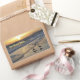 Les oiseaux de rivage jouent dans le surf au coucher du soleil sur les montagnes californiennes. Modifiez le texte pour ajouter votre nom de famille, le nom de la maison de plage ou l'expression préférée, ou supprimez simplement le texte. La boîte en bois se tient seule ou vous pouvez l'accrocher.