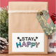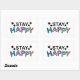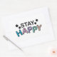 Les mots "Restez heureux" avec des lettres multicolores et des étoiles mignonnes - de bonnes vibrations et du plaisir!