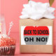 Un retour amusant au design scolaire avec image et texte en rouge, noir et gris. Design original.