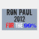 Sticker Rectangulaire Ron Paul 2012, Pour Les 99%