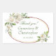 Merci à vos amis et à votre famille d'avoir assisté à votre mariage lorsque vous envoyez ces Stickers Merci Floral Rose Boho Blanc qui ont des roses en bouquets blancs et baies antiques en Bourgogne contre un arrière - plan blanc simple et élégant avec anneaux or et bordeaux. Customisez votre texte, votre style de police et votre couleur.
