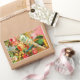 • Illustration d'un paquet cadeau emballé, surmonté de cœurs, représentant la « garantie 100 % satisfaction » de Zazzle.