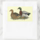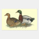 Les rouens sont de gros canards avec un motif de couleur semblable à Mallards. La tête verte brillante du drake se distingue mais les plumes crayonnées de la poule sont magnifiquement modelées.
