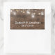 Ce bel autocollant élégant présente des bocaux en mason et des lampes à cordes sur un arrière - plan en bois rustique. Facile à customiser avec vos propres noms et date de mariage. Veuillez me contacter pour toute personnalisation de design supplémentaire dont vous pourriez avoir besoin pour votre beau mariage. Design © par TK Goforth. Pour la coordination des articles, veuillez visiter ma collection de Mariages Rustic Mason Jar et String Lights et ma boutique Zazzle :