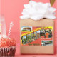 Design vintage d'une carte postale touristique pour Père Noël Fe, Nouveau-Mexique. Lumineux et amusant.
