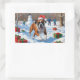 Sticker Rectangulaire Scène de Noël festive de Boxer dans la neige