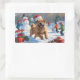 Sticker Rectangulaire Shar Pei coule dans la neige avec le Casquette de