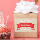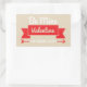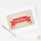 Ce sticker fun Valentine's Day présente une bannière rouge et le texte 'Be Mine Valentine' '14 Février'. L'arrière - plan beige est optionnel et peut être changée en n'importe quelle couleur.
