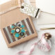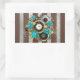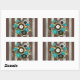 Sticker Rectangulaire Steampunk Clock and Turquoise Roses on Striped