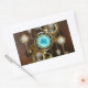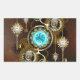 Turquoise lenses with antique watch with brass gears and golden keys on rusty, brown background. Steampunk style.