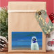 Cadeaux de photographie de plage avec planche de surf blanche debout dans le sable avec la belle plage bleue de l'arrière - plan. Photo prise à Flagler Beach, Floride.