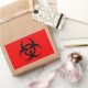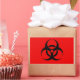 Symbole de danger biologique noir sur une couleur rouge néon.