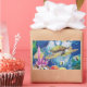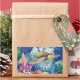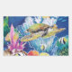 Peinture en soie d'une tortue verte et d'amis. Petits poissons dorés, poissons anges et autres se partagent la mer avec des algues et des coraux colorés. Amusant et lumineux pour aquariums, boutiques de cadeaux, cadeaux et cartes.