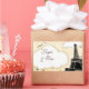Tour Eiffel en noir avec nuages blancs, oiseaux et tourbillons. Modifiez facilement les noms de cette conception. Stickers fera de grands faveurs / décorations pour un Paris français ou une fête à thème tour effel.