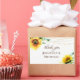 Sticker en Merci Mariage rustique représente des tournesols fleuris jaune aquarelle et de la verdure avec des lampes à cordes.