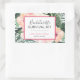 Collez ces autocollants amusants sur une boîte remplie de bonnes choses pour se remettre d'une gueule de bois pour le week-end de l'enterrement de vie de jeune fille. Autocollant Trousse de Survie pour l'Enterrement de Vie de Jeune Fille avec des feuilles tropicales et des fleurs roses. Personnalisez avec le nom de la mariée et le hashtag.