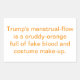 Trump's menstrual-flow is a cruddy-orange full of fake blood and costume make-up. Comic Conscious-Social-Commentary Splash-art sticker-design by Jeff Hankamer at Artjunkhaus