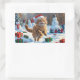 Sticker Rectangulaire Turc Angora Chat Courir en Casquette de Noël de ne