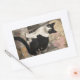 Sticker Rectangulaire Tuxedo Chat sur un rocher assis dans un jardin