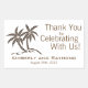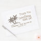 Ce stickers de remerciement de mariage simple mais élégant comporte deux palmiers marron avec les prénoms de la Mariée et de la Salle et la date mariage en dessous. Sur le côté des arbres se trouvent les mots "merci de célébrer avec nous". Cela pourrait être utilisé pour les faveurs de mariage et/ou les étiquettes de cadeaux de remerciement. Parfait pour les mariages tropicaux, balnéaires, océaniques ou de plage.