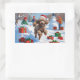Sticker Rectangulaire Un caniche coule dans la neige avec le Casquette d