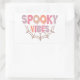 Ce design d'Halloween amusant et festif comprend l'expression "Vibes Éffrayantes" dans une police ludique et dégoulinante qui donne au texte un effet d'élégance et d'étrangeté. Les mots sont remplis de douces teintes pastel de rose, d'orange, de violet et de pêche, ajoutant une touche légère et fantaisiste au thème éffrayant. Sous le texte, une simple illustration en toile d'araignée d'une couleur brune douce ajoute une touche d'Halloween classique, en liant le design ensemble. La combinaison des couleurs pastel et des éléments éffrayants crée un contraste unique, à la fois mignon et un peu déplaisant, parfait pour Halloween