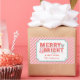 Cet autocollant de Noël présente un design gai avec un texte qui dit "Souhaitez-vous une saison de vacances joyeuse et brillante." Vous pouvez personnaliser avec votre nom en bas. Sur le dos se trouve un autre motif de coordination en diagonale rose et rouge.