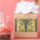 Sticker Rectangulaire Vitrail Art Nouveau Fleur d'Iris Bleu Or