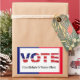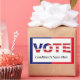 VOTE Texte rempli de couleurs Flag avec une bordure bleue et rouge. Ajoutez le nom de votre candidat dans l'espace prévu à cet effet. Distinctif.