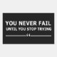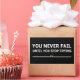 Vous pouvez ajouter un peu d'originalité à votre collection d'armoires avec ce "vous n'échouez jamais jusqu'à ce que vous arrêtez d'essayer" design texte avec une police de typographie géniale lettrage, est une excellente idée cadeau pour les hommes, les femmes, les maris, la petite amie de la femme, et un petit ami qui aimeront cette motivation unique et dicton inspirant. Les meilleures paroles extraordinaires courtes positives présentes pour votre collection de sagesse. Si vous aimez cette illustration, vous pouvez consulter d'autres modèles et options similaires.