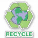 Autocollant en vinyle découpé personnalisé avec planète Terre, symbole de recyclage vert et légende "RECYCLE".