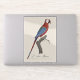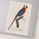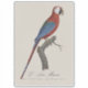 The illustration style resembles classic natural history artwork, similar to the works of Jacques Barraband, emphasizing anatomical accuracy and vibrant coloration. The bird is shown perched on a branch, highlighting its zygodactyl feet—two toes facing forward and two backward—which provide exceptional grip for climbing and handling food. Its facial skin, marked with fine feather lines, and expressive eye contribute to its recognizable appearance. These macaws are highly intelligent and social, often forming lifelong pair bonds and communicating through loud, distinctive calls.