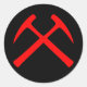 Autocollant noir avec marteaux de roche croisée rouge graphique.