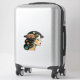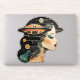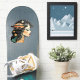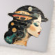 Un autocollant avec une femme les yeux fermés. L'univers et un OVNI / UAP est dans ses cheveux.