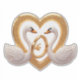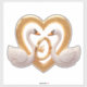 Romantic swans forming a heart shape around interlocking gold wedding rings set inside a sparkling pink glitter heart, evoking love, marriage, romance, elegance, and celebration.
