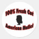 Profil Hillbilly arborant une image parfait mullet avec la phrase, "100% Fresh Cut American Mullet" écrit ci-dessus et ci-dessous en caractères courbes en noir et rouge.