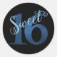 Sticker Rond 16 ans | Aquarelle bleue et Faux Parties scintilla